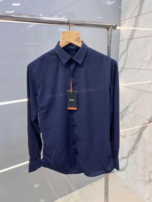 Hugo Bos s Navy Premium 4way Stretchable Japanes Lycra Fabric Wrinkle Free Shirt with Brand Box 2446